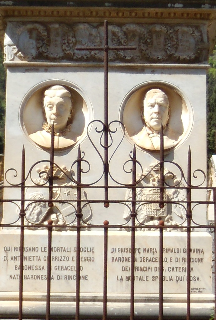 QUI RIPOSANO LE MORTALI SPOGLIE / DI ANTONIETTA GIARRIZZO E REGGIO / BARONESSA DI GERACELLO / NATA BARONESSA DI RINCIONE