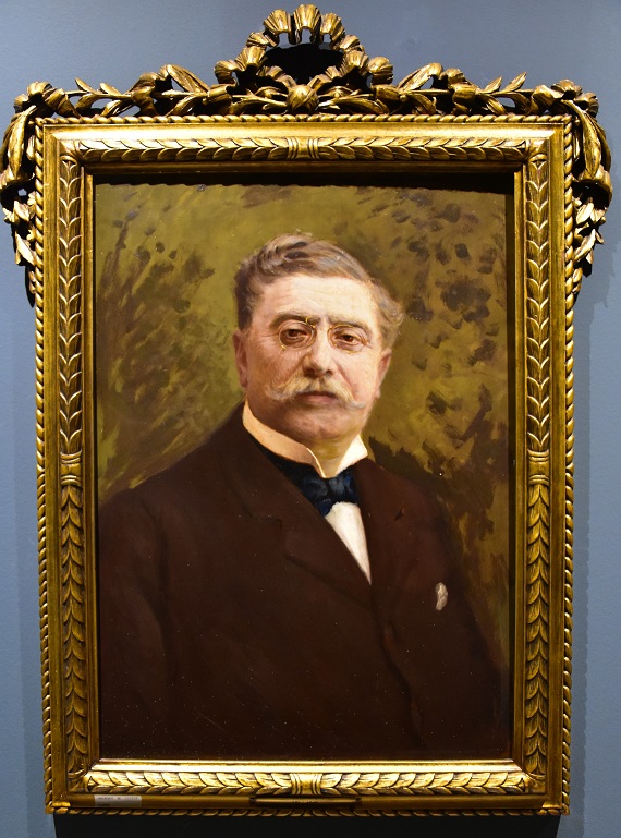 Il busto in pietra del banchiere Luigi Cosenz è stato realizzato nel 1923 dallo scultore Pasquale Civiletti. Sotto reca la semplice scritta: LUIGI COSENZ / N. 3 GIUGNO 1844 / M. 19 LUGLIO 1917