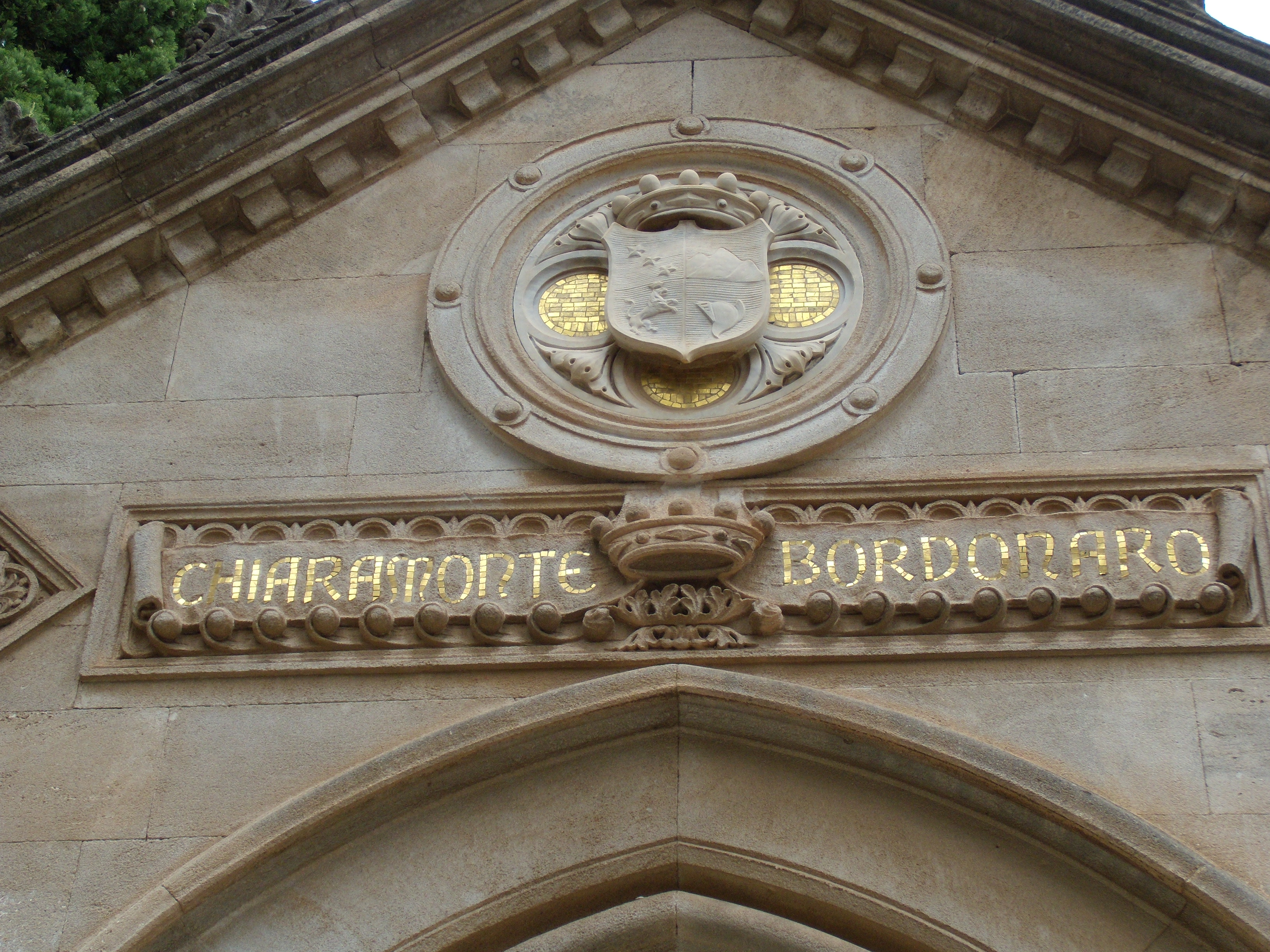 La neogotica cappella Chiaramonte Bordonaro presenta ai quattro angoli, due colonne sovrapposte incassate. L’altorilievo della lunetta, raffigurante una Madonna con le mani sul cuore affiancata da due piccoli angeli, è stato realizzato nel 1919 dallo scultore Domenico Delisi.