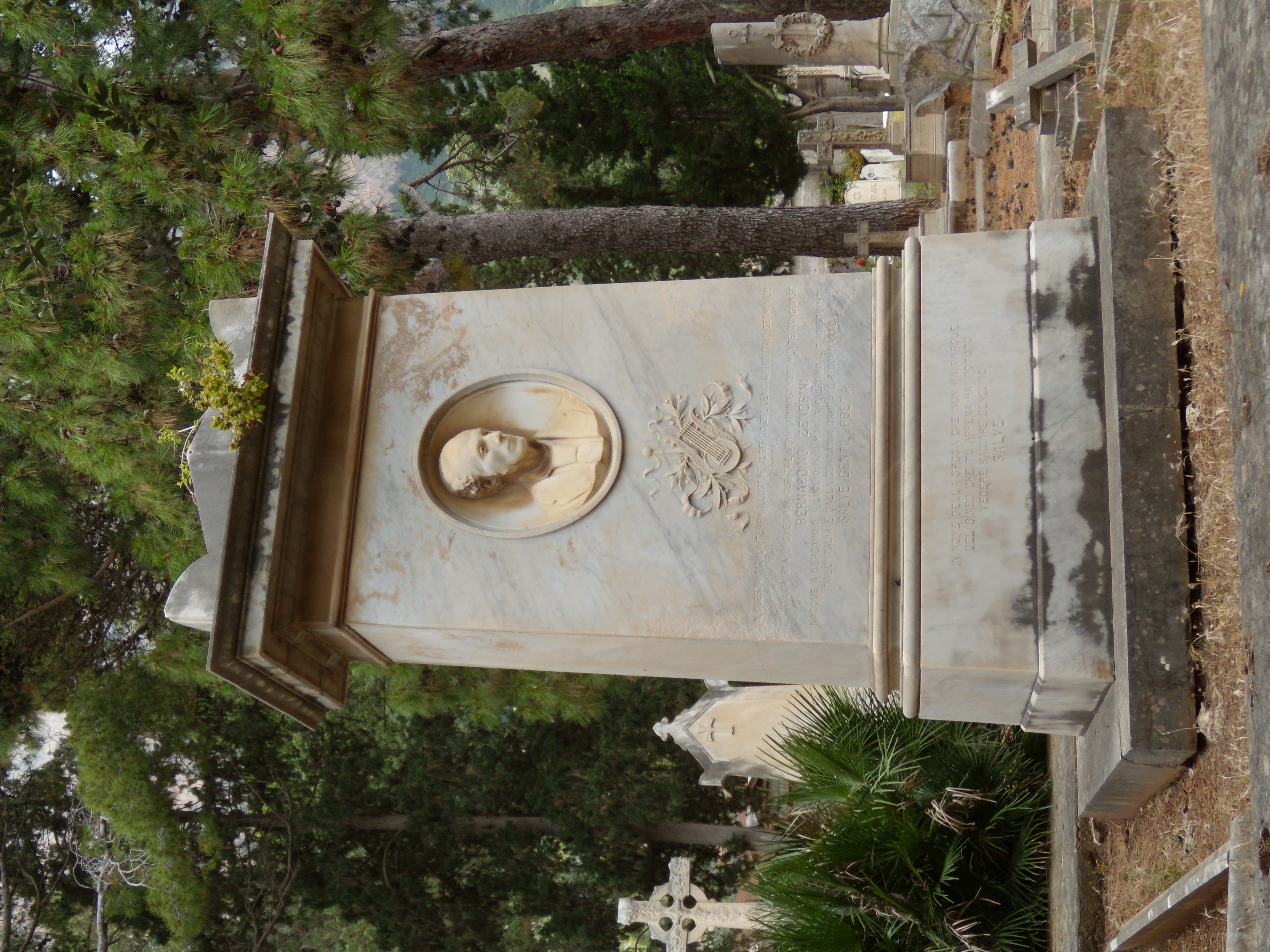 IN QUESTA SICULA TERRA ILLUSTRE ALBERGO DEL GENIO GRECO ITALO GERMANICO / RIPOSA / NELLA SUA BREVE VITA DUE TRE GENII LUMINOSI NOBILMENTE CONGIUNSE / BERNADINO ZENDRINI / NACQUE A BERGAMO IL 6 LUGLIO 1839 MORÌ A PALERMO IL 7 AGOSTO 1879 / DALL’ITALIA E DALLA GERMANIA ONORATO E COMPIANTO / SALVE GENTIL POETA