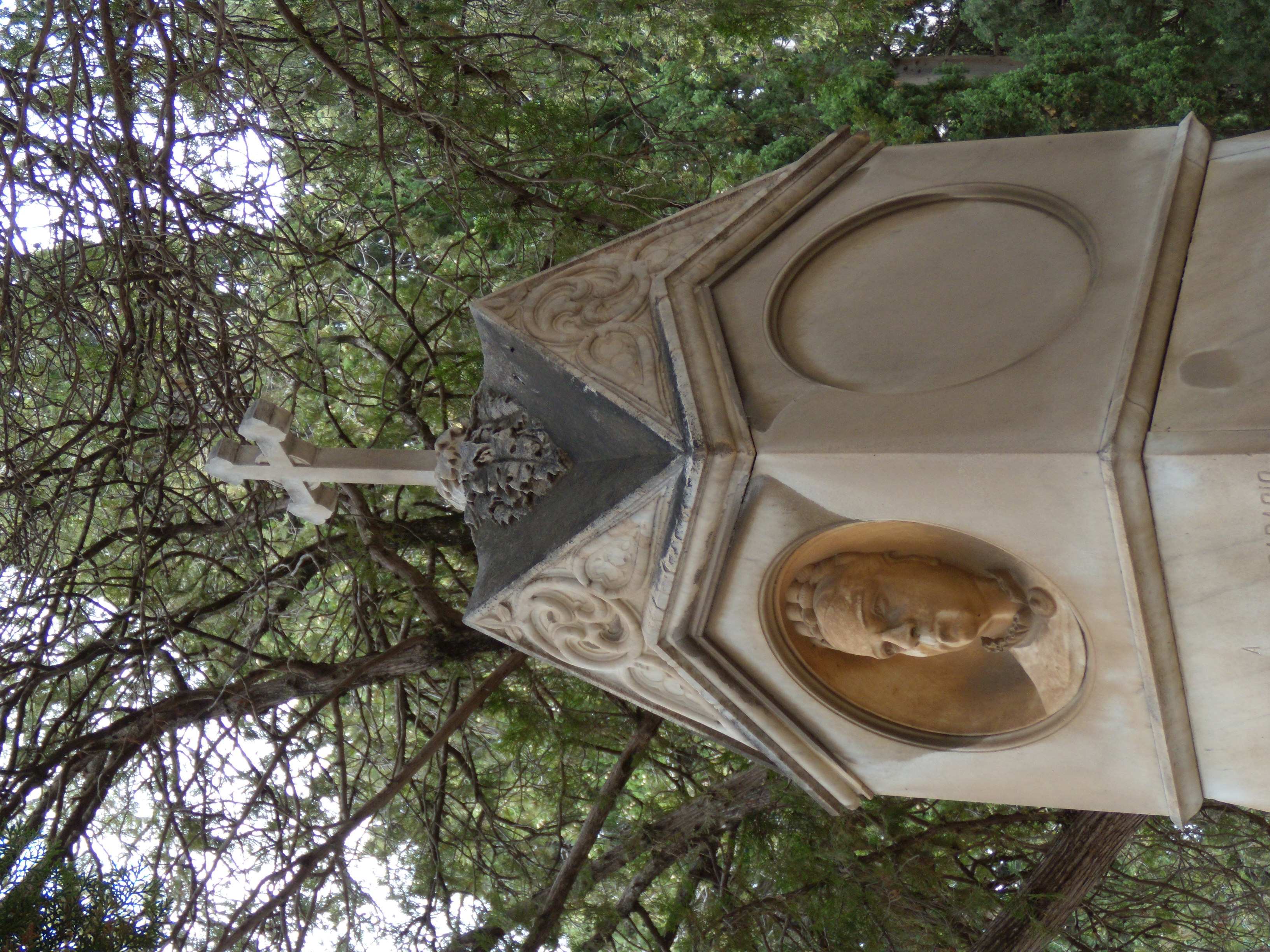 ROSALIA BENFRATELLO SPARACIO / MODELLO ED ESEMPIO DI DOMESTICHE VIRTU / MOGLIE E MADRE IMPAREGGIABILE / ALLOR CHE DELLA VITA / LE SPETTAVA GODER GIORNI PIU BELLI / FATAL MORBO LA COLSE / ED UNA ZOLLA DI TERRA / OR / NE RACCHIUDE LE SPERANZE E GLI AFFETTI / INCONSOLABILE MARITO ED I FIGLI DESOLATI / LACRIMANDO / QUESTO MARMO CONSACRANO / SIA PACE ALL’ANIMA SUA / NACQUE IL 28 LUGLIO 1828 MORI IL 10 SETTEMBRE 1876