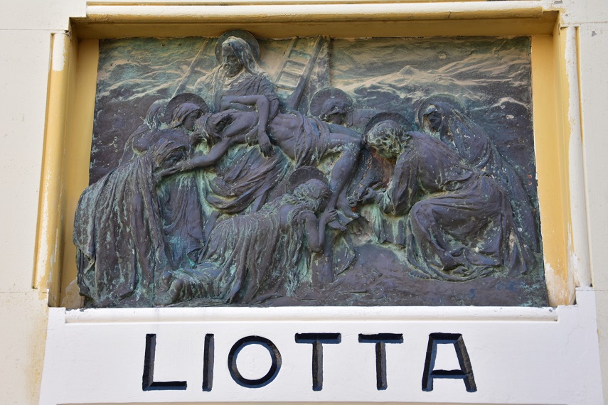 Una replica di questo pannello si trova sulla facciata della cappella Liotta, sempre nel cimitero di Sant’Orsola. L’opera non sembra firmata, ma è indiscutibilmente identica al bassorilievo della cappella Rutelli.