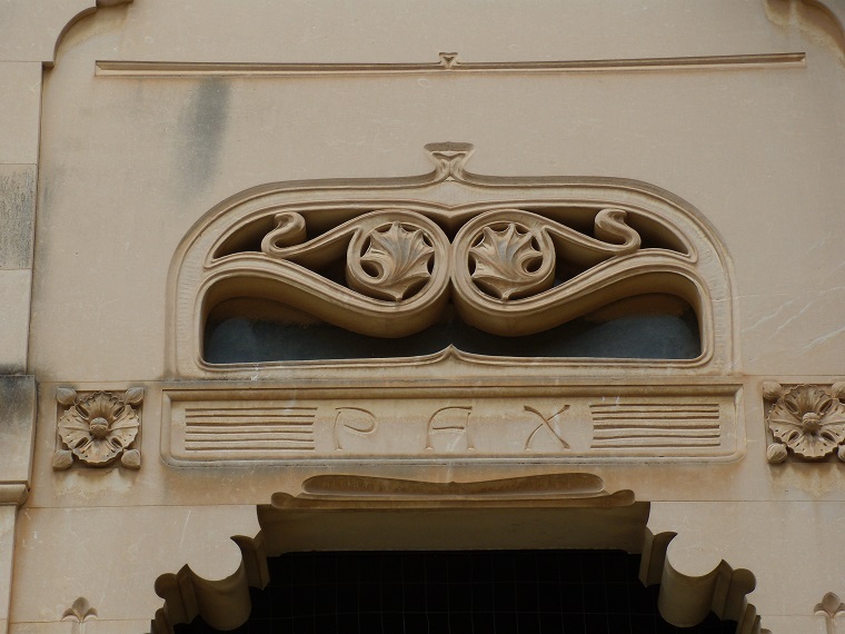 La scritta PAX che campeggia sul prospetto della cappella Grossetti-Ducrot-Durand presenta invece delle lettere più curve: